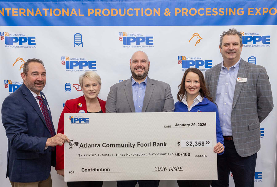As part of the effort to fight hunger, the 2026 International Production & Processing Expo (IPPE) raised $32,358 for the Atlanta Community Food Bank through its ‘Giving Back to Atlanta’ campaign. The donation included $19,500 in contributions from IPPE, Hawkins Inc., Komline-Heron and WATT Global Media, with additional contributions of $927 from Expo Auctions. Numerous IPPE attendees made individual donations totaling $11,931.